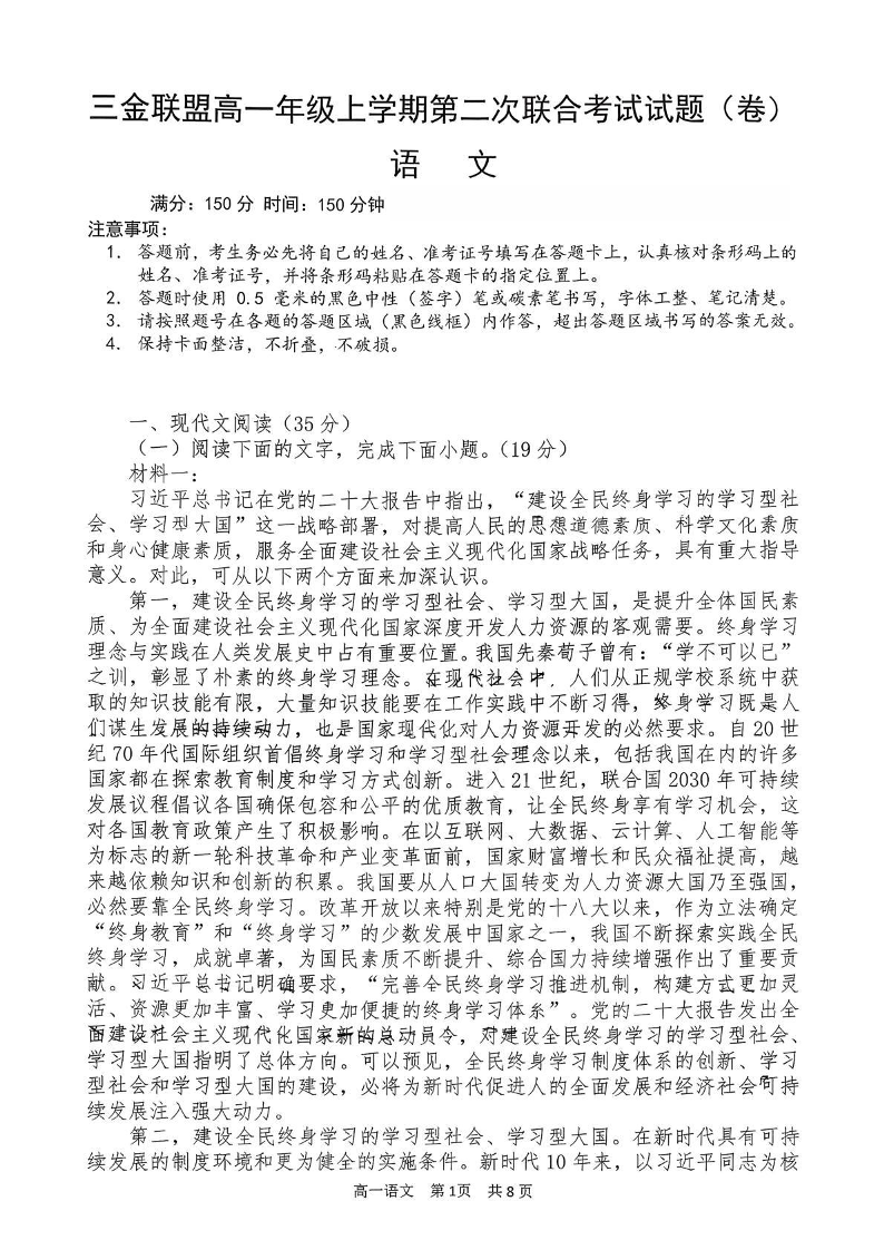 高一语文+答案--山西省吕梁市三金联盟2025-2026学年高一上学期第二次联合考试(12月)