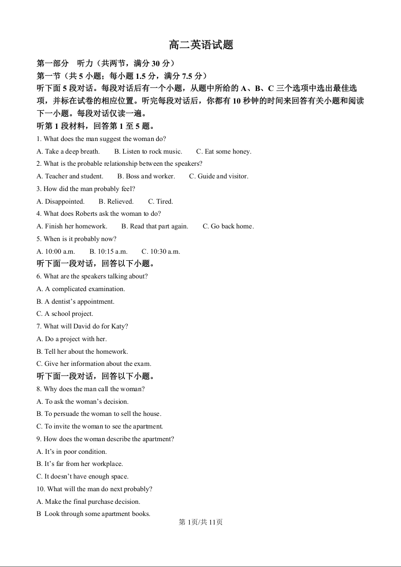 高二英语(原卷版)--陕西省镇安中学2025-2026学年高二上学期12月月考
