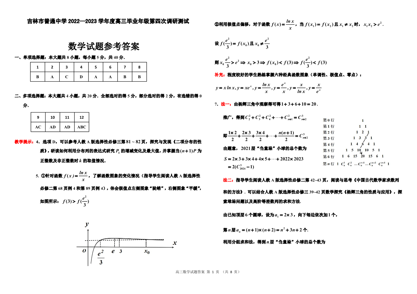 高三数学答案--吉林市普通高中2022-2023学年度高三年级第四次调研测试