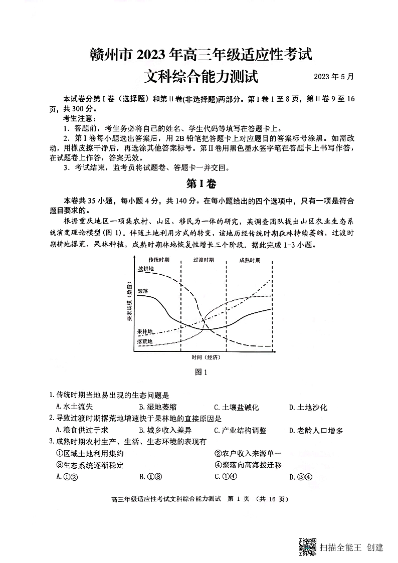 高三文综--江西省赣州市2025届高三第二次模拟考试