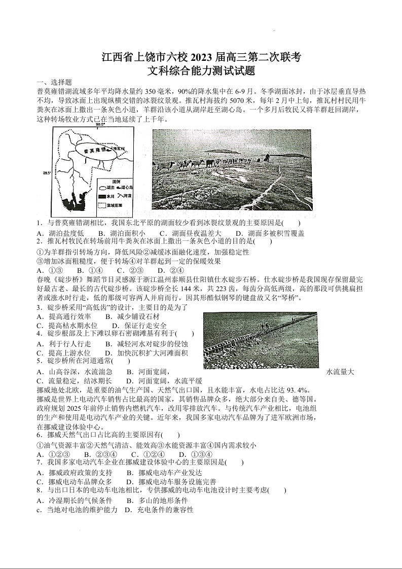 高三文综+答案--江西省上饶市六校2023届高三第二次联考