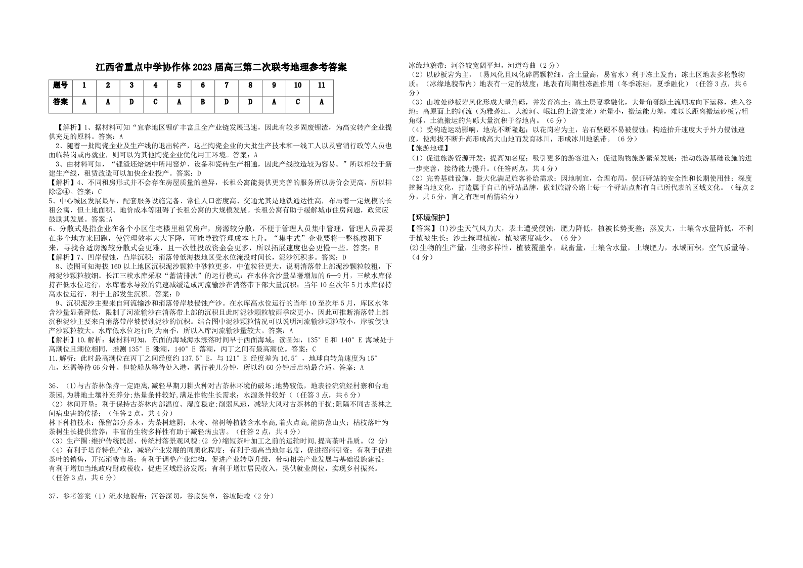 高三文综答案--江西省重点中学九校协作体2023届高三第二次联考
