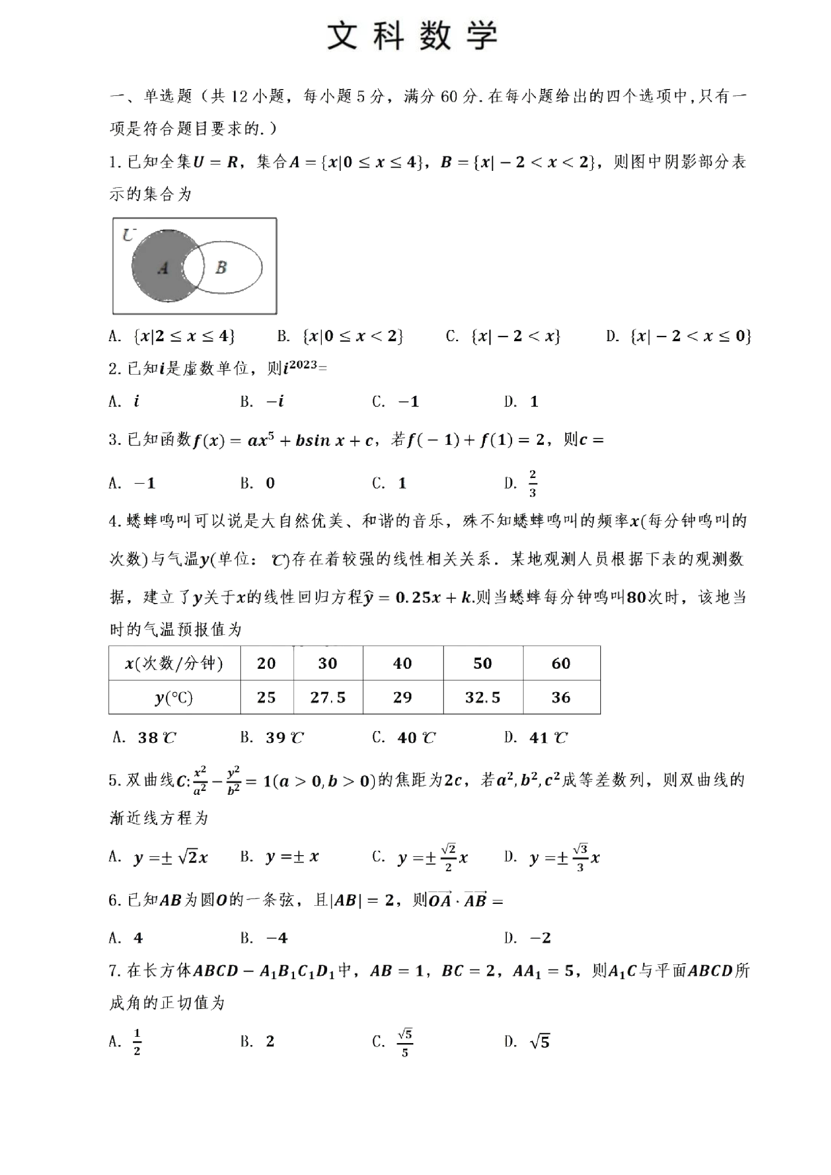高三文数--宁夏银川一中、昆明一中2023届高三联合二模考试