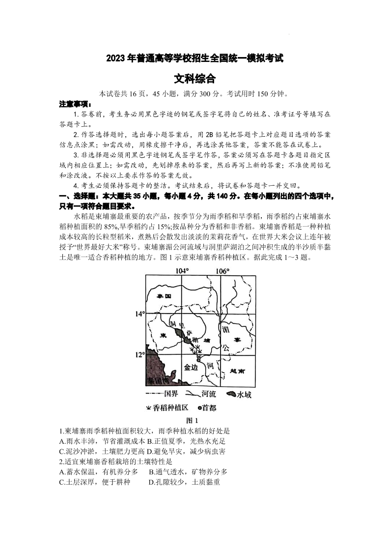 高三文综+答案--山西省吕梁市2023届高三下学期三模