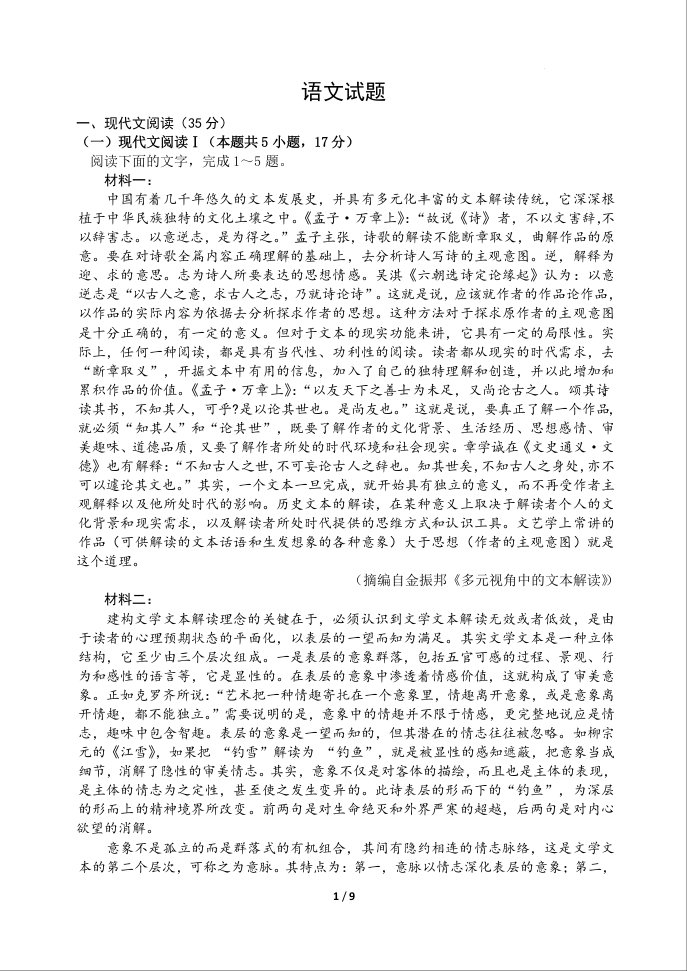 高三语文--山西省太原市山西大学附属中学校2023届高三下学期5月月考