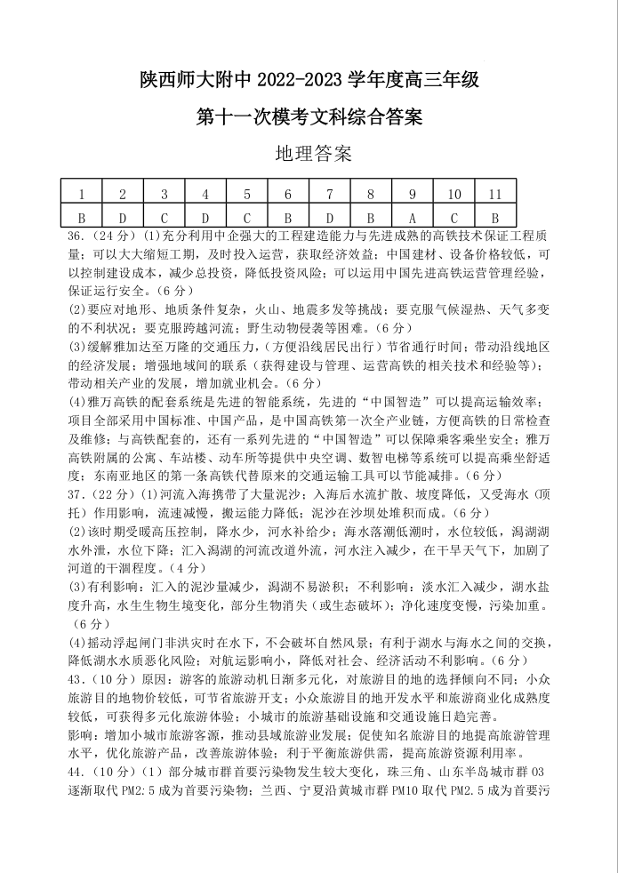 高三文综答案--陕西师大附中2022-2023学年度高三年级第十一次模考