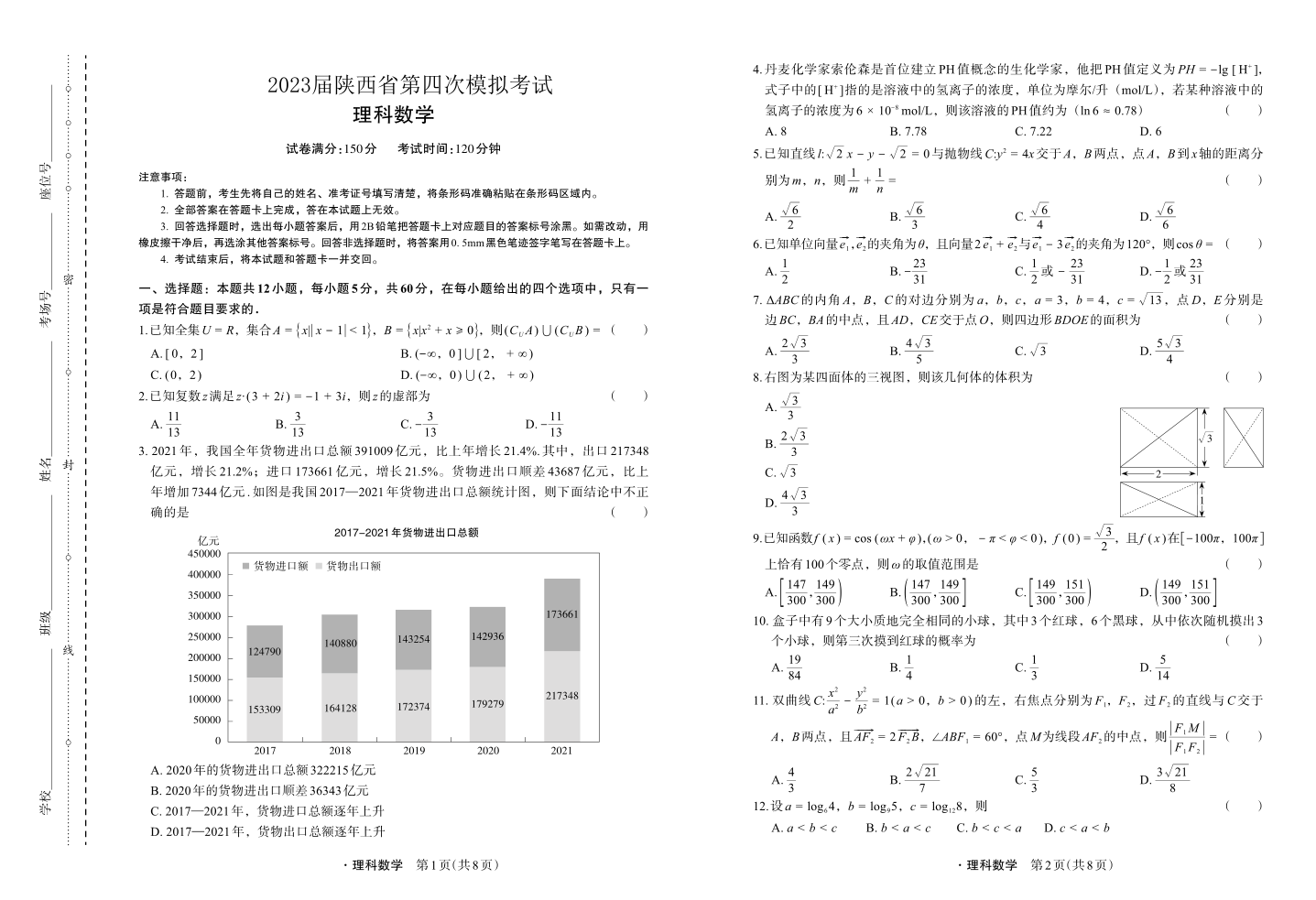 高三理数--陕西省2023届第四次模拟考试(菁师联盟)