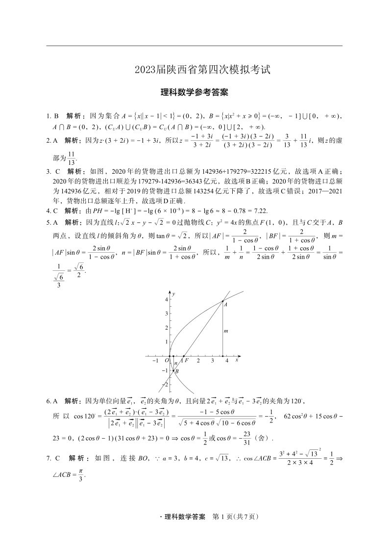 高三理数答案--陕西省2023届第四次模拟考试(菁师联盟)