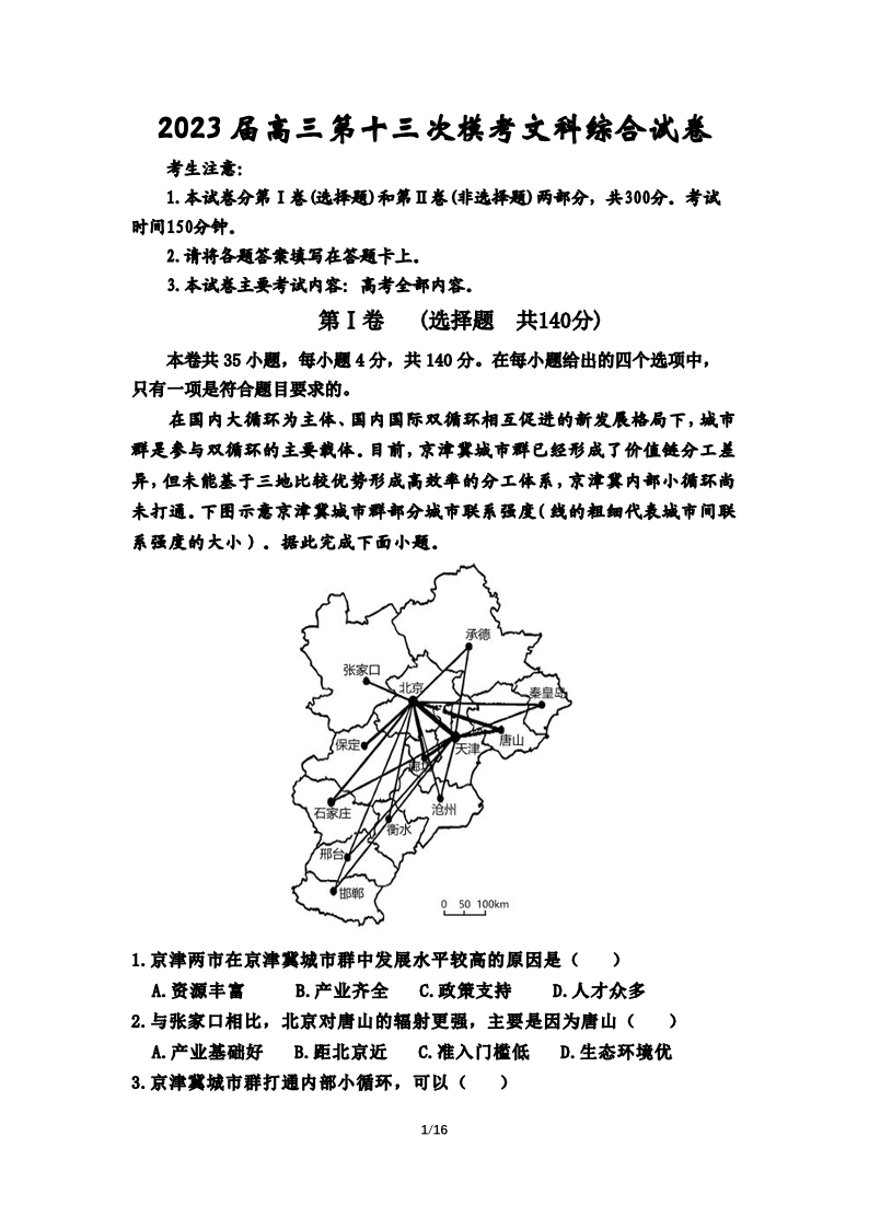 高三文综--陕西省宝鸡市2023届高三第十三次模考