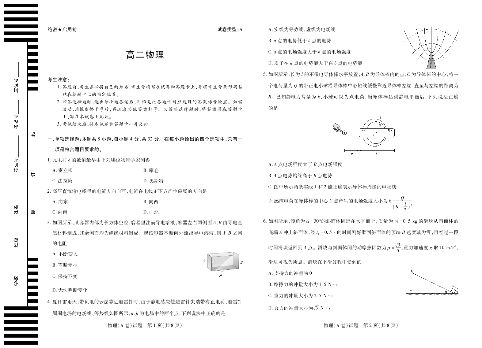 高二物理A--安徽省部分学校(合肥六中)2025-2026学年高二上学期12月联考