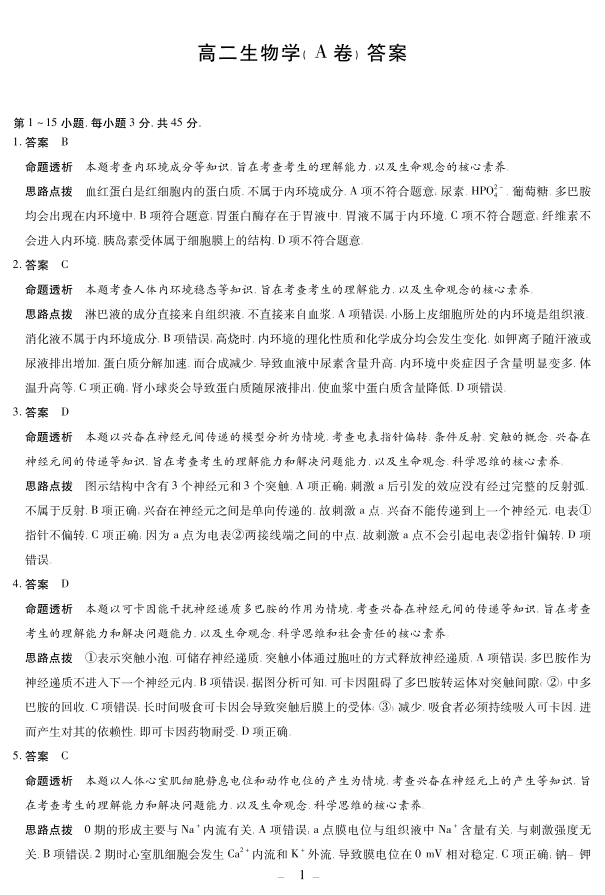 高二生物A答案--安徽省部分学校(合肥六中)2025-2026学年高二上学期12月联考