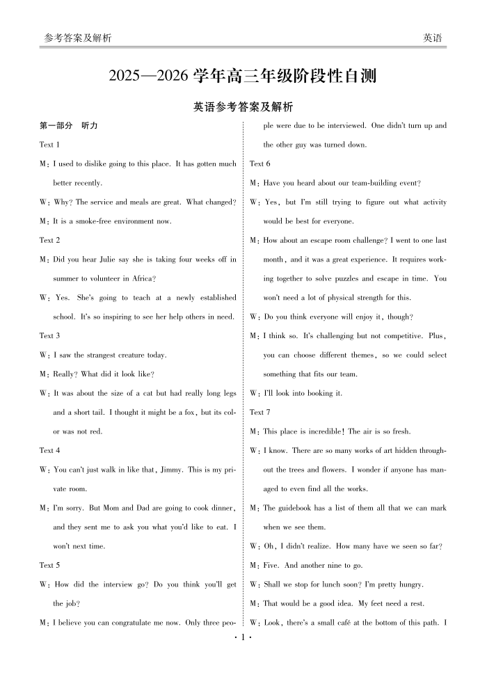 高三英语答案--内蒙古衡水金卷2026届高三上学期12月阶段性自测