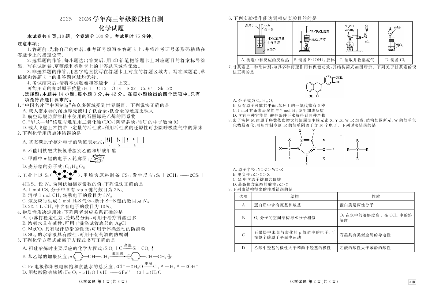 高三化学--陕晋青宁衡水金卷2026届高三上学期12月阶段性自测