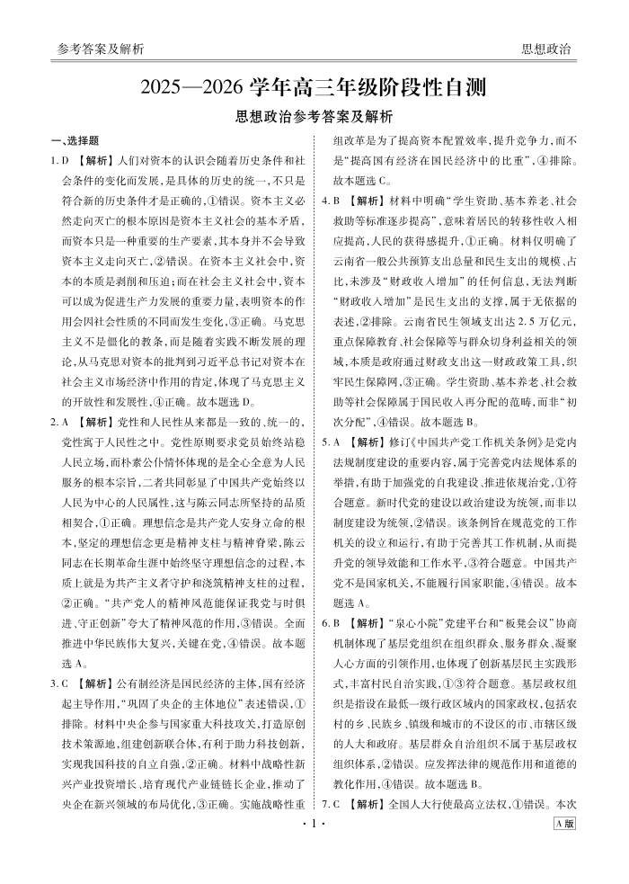 高三政治答案--陕晋青宁衡水金卷2026届高三上学期12月阶段性自测