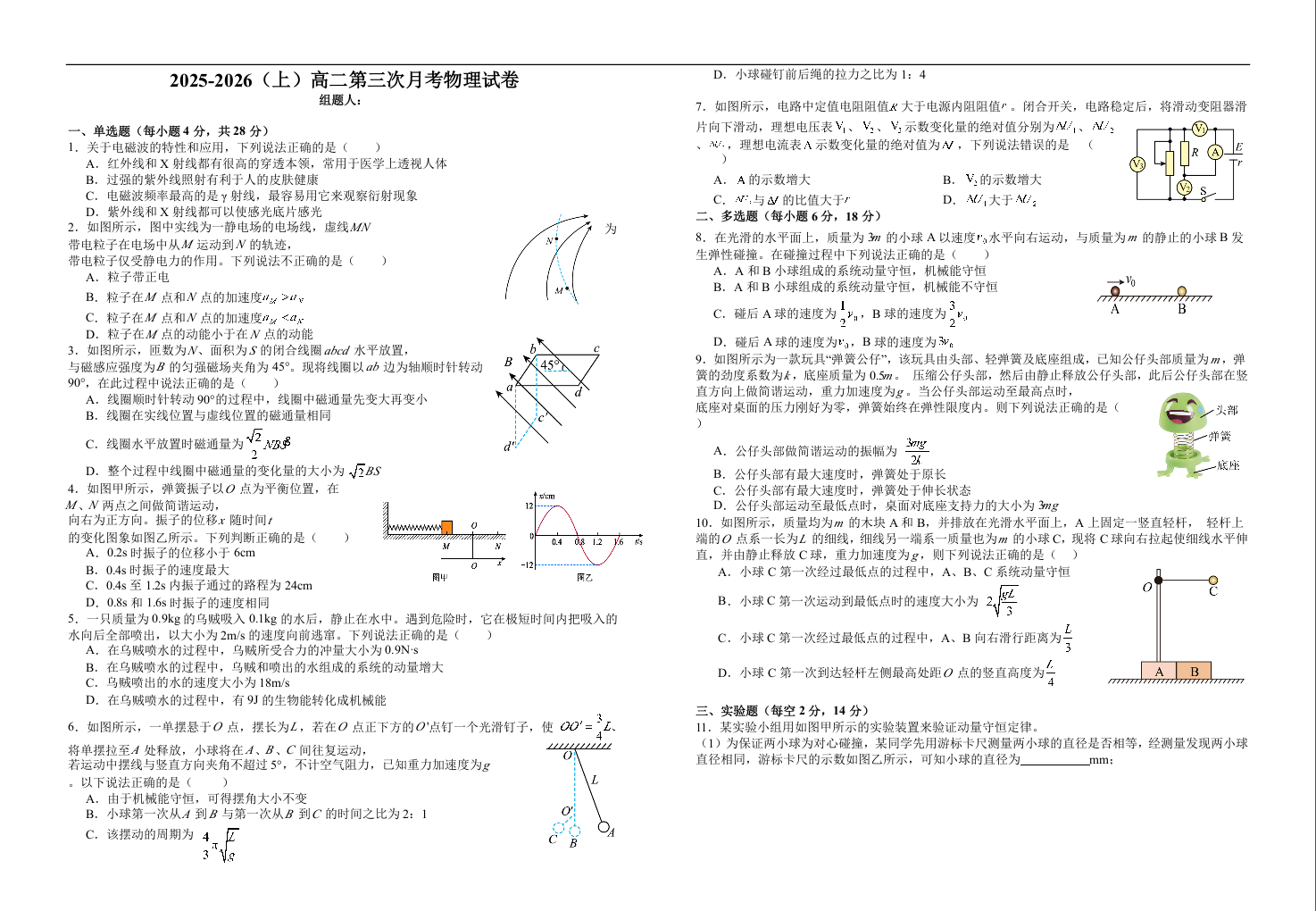高二物理+答案--江西省宜春市宜丰中学2025-2026学年高二上学期12月月考