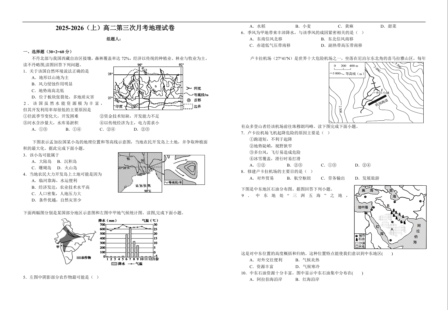 高二地理+答案--江西省宜春市宜丰中学2025-2026学年高二上学期12月月考