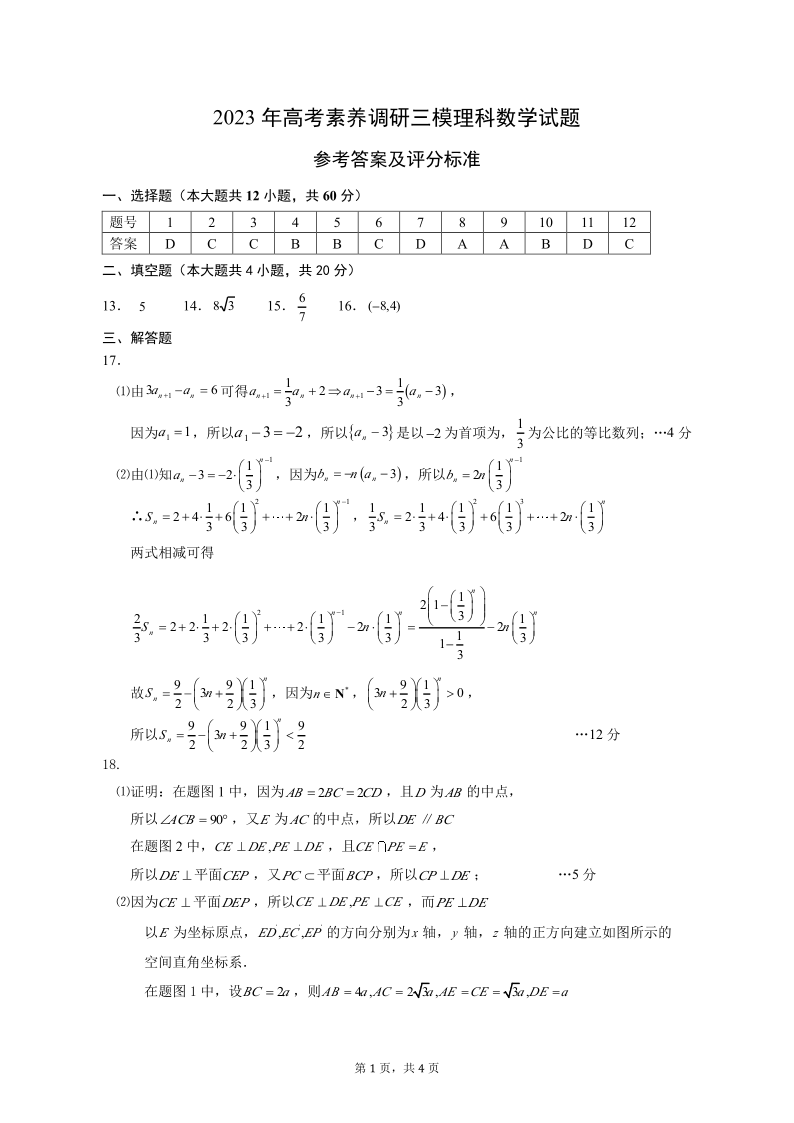 高三理数答案--新疆维吾尔自治区阿勒泰地区高三下学期高考素养调研第三次模考