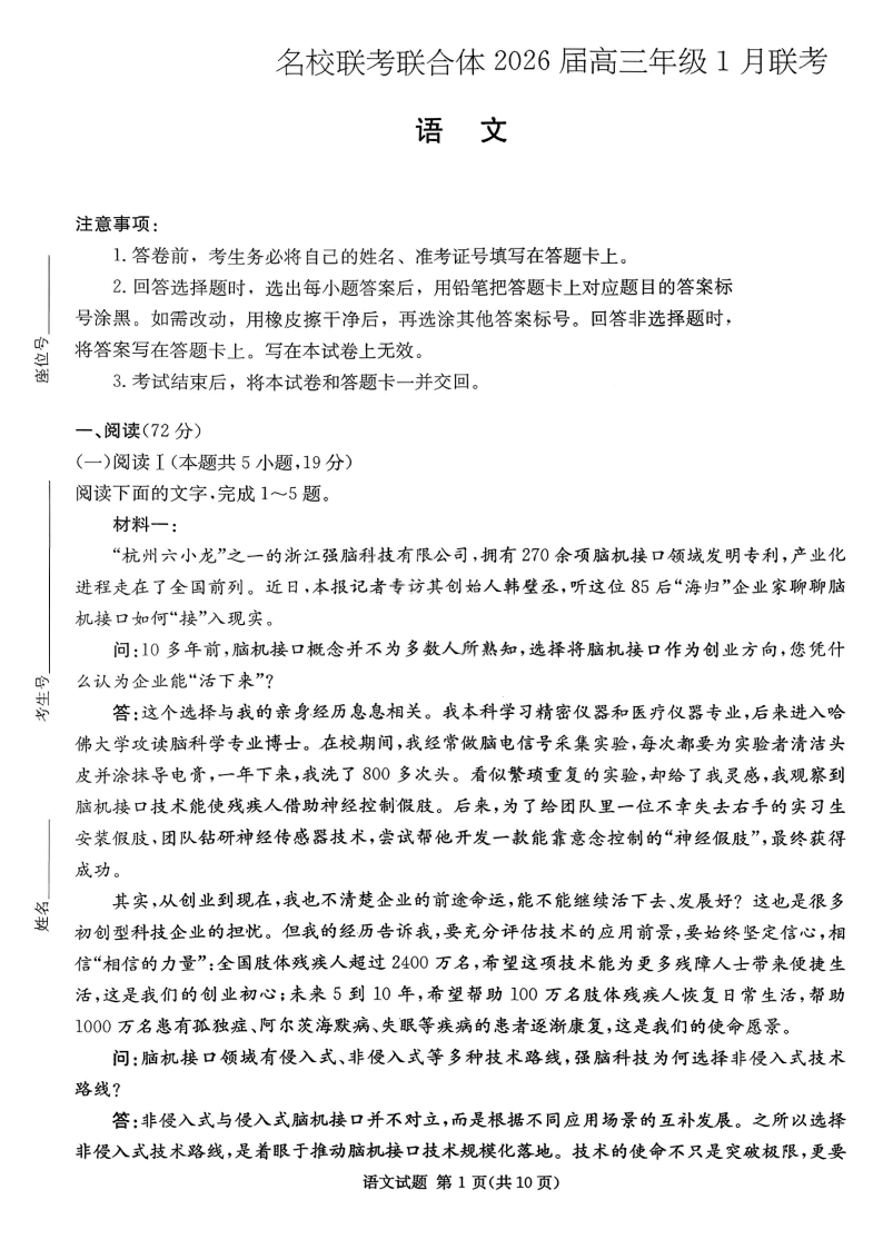 高三语文+答案--湖南省名校联考联合体2025-2026学年高三上学期1月联考