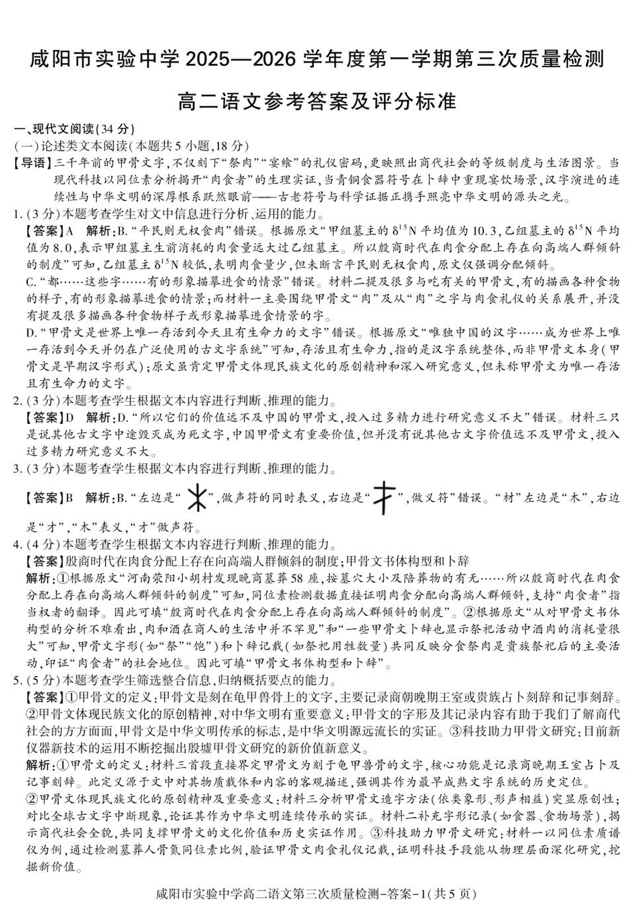高二语文答案--陕西省咸阳市实验中学2025-2026学年高二上学期第三次质量检测