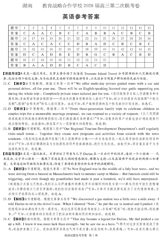 高三英语答案--湖南佩佩教育战略合作学校2026届高三1月第二次联考