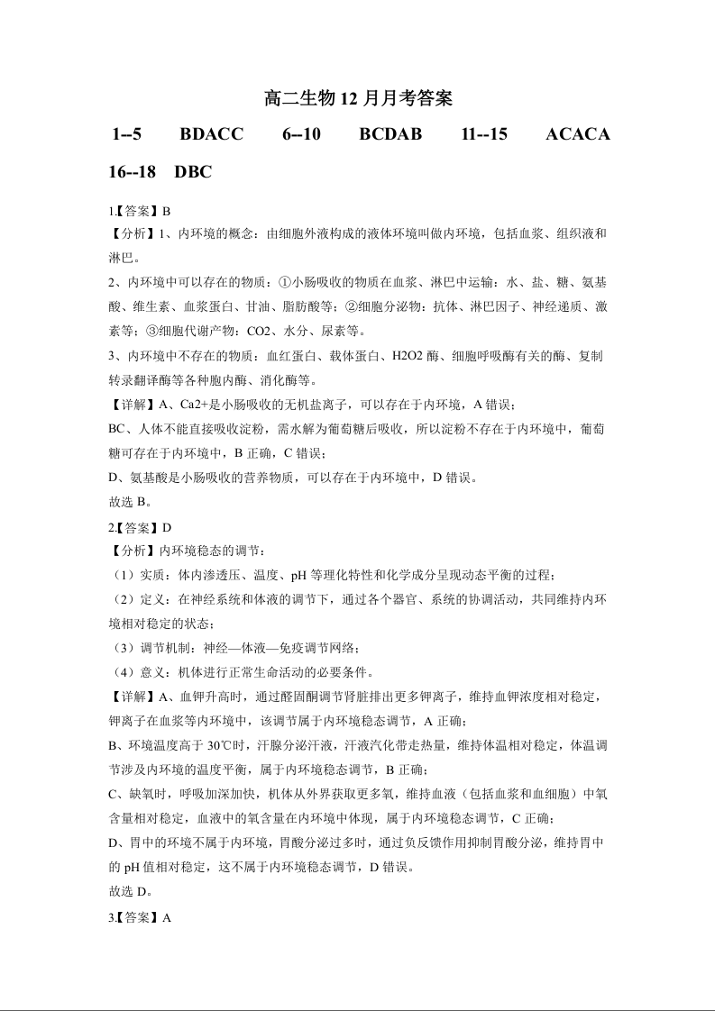 高二生物答案--湖北省孝感市汉川市金益高级中学2025-2026学年高二上学期12月月考