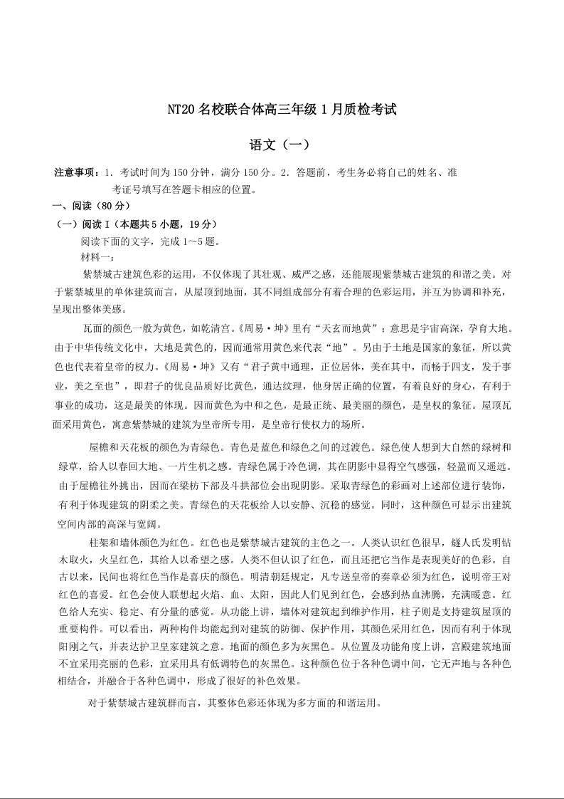 高三语文--河北省NT20名校联合体2026届高三上学期1月质检考试试卷