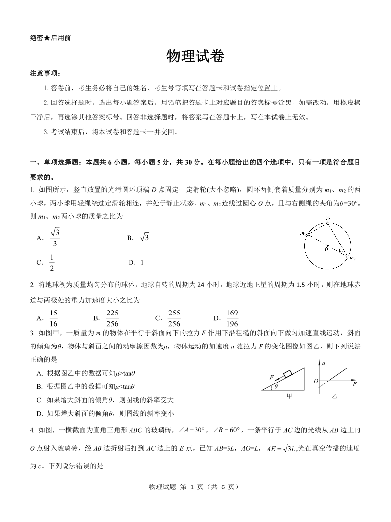 高三物理--山西省(三重教育)2023高三开学摸底考试