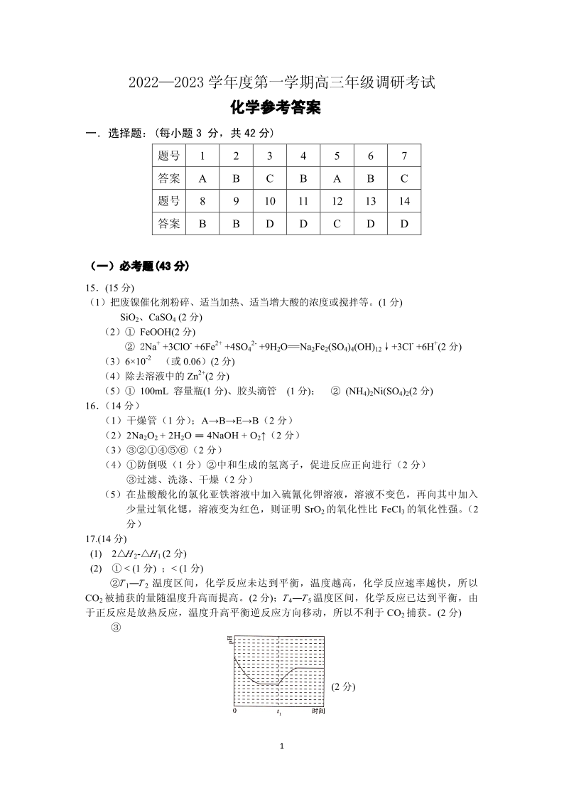 高三化学答案--内蒙古包头市2023高三上学期开学调研考试