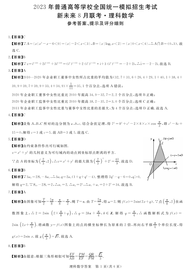 高三数学答案--新未来2023高三8月联考