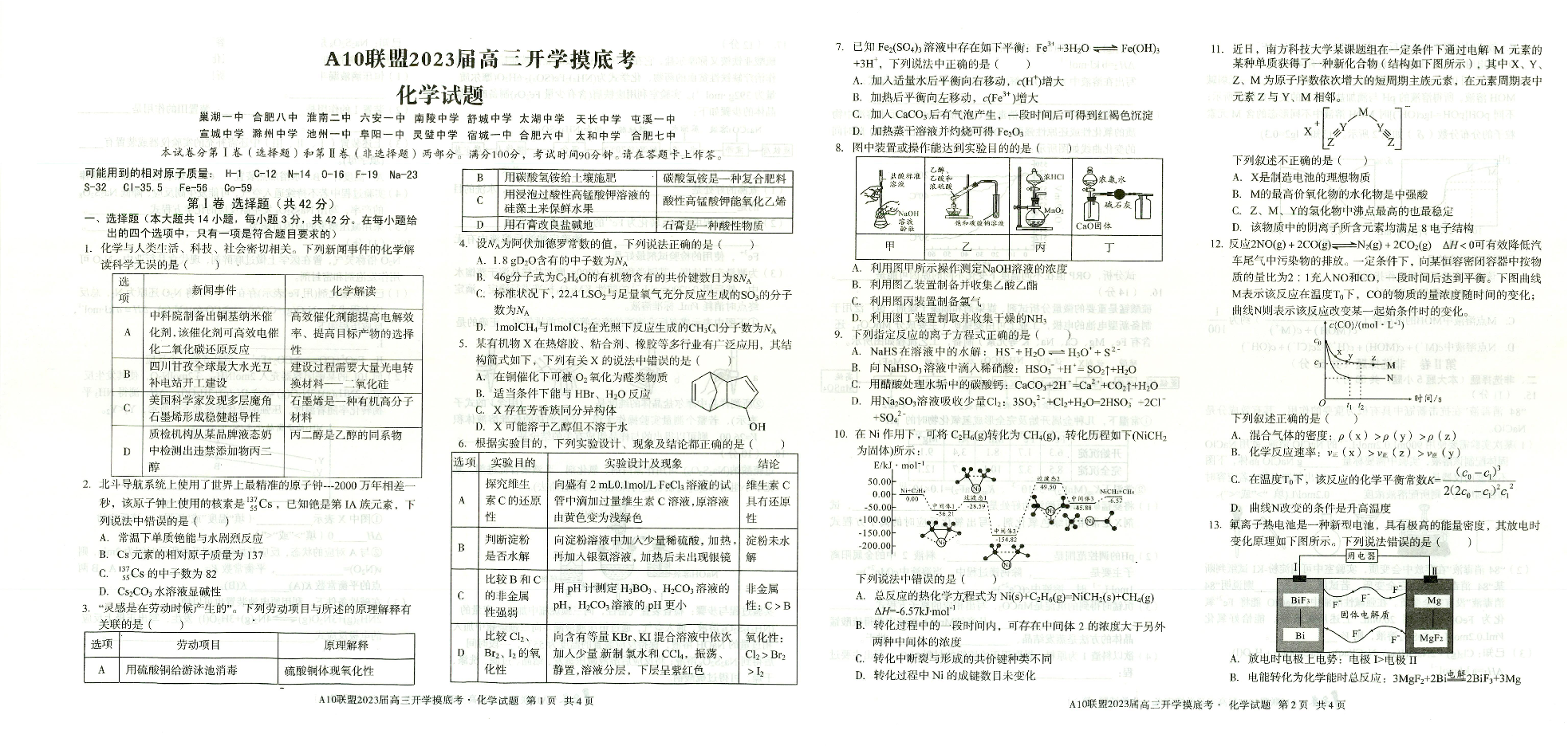 高三化学--安徽省A10联盟2023高三上学期开学考试