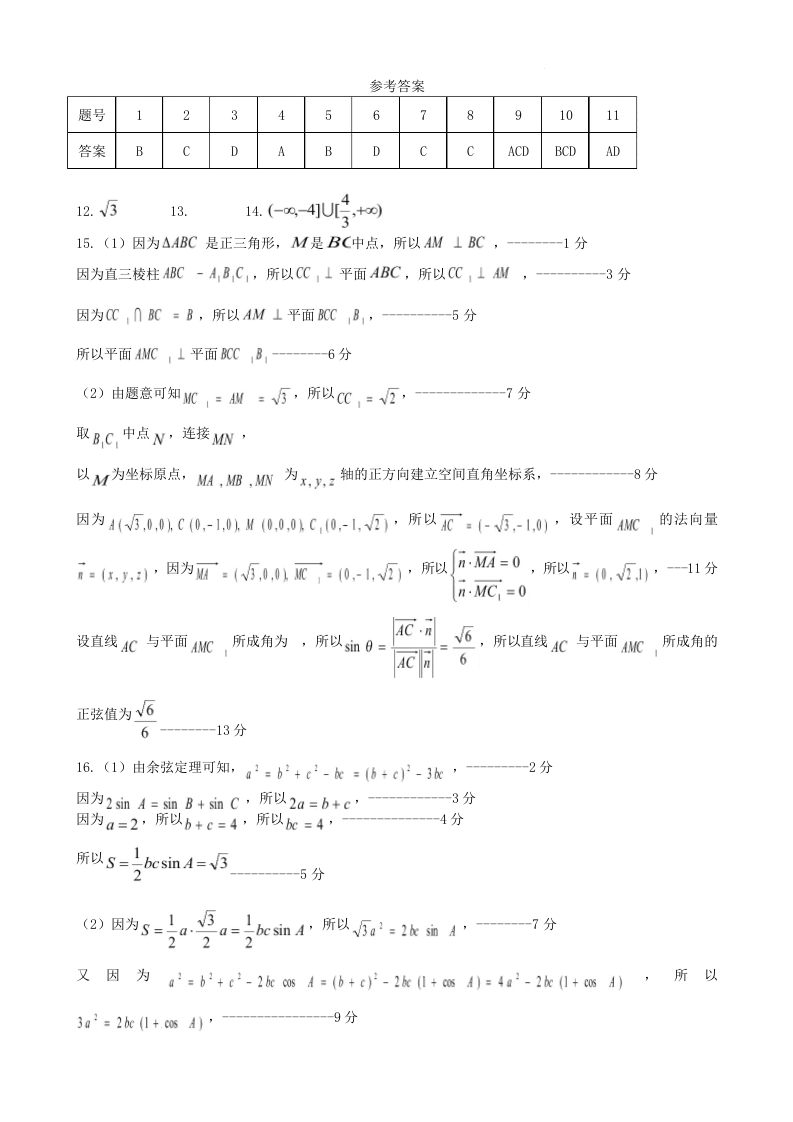 高三数学答案--黑龙江省哈尔滨市第六中学校202届高三上学期1月期末考试
