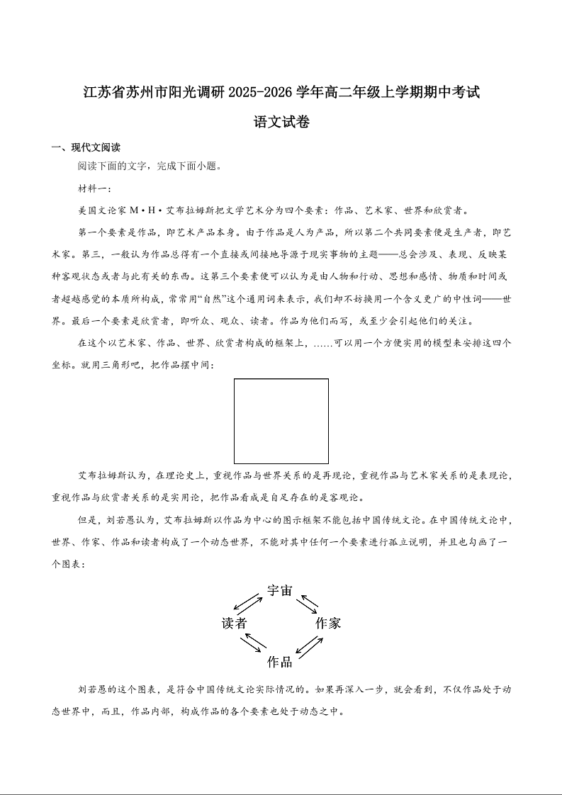 高二语文+答案--江苏省苏州市2025-2026学年高二上学期期中考试