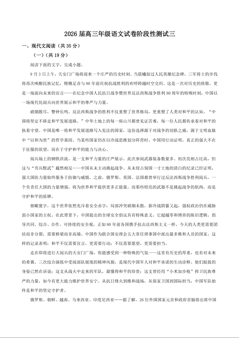 高三语文+答案--江西省上高二中2026届高三上学期第三次阶段检测