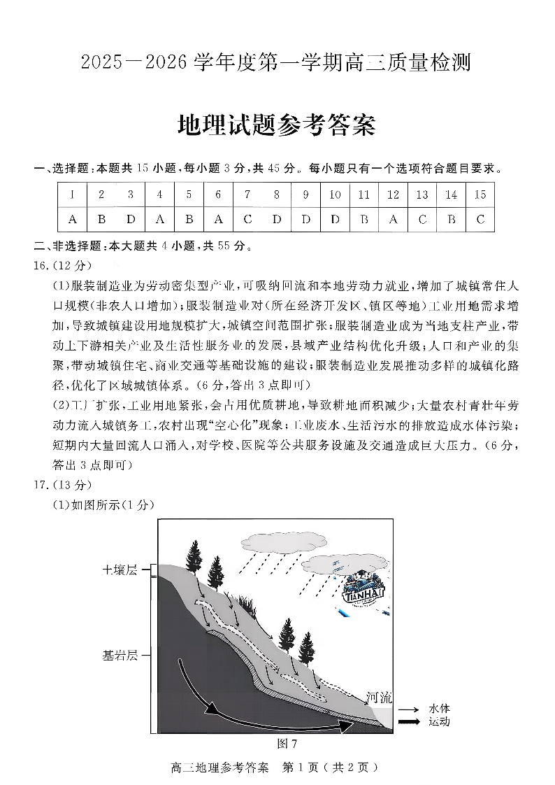 高三地理答案--山东省济宁市2026届第一学期高三质量检测期末考试