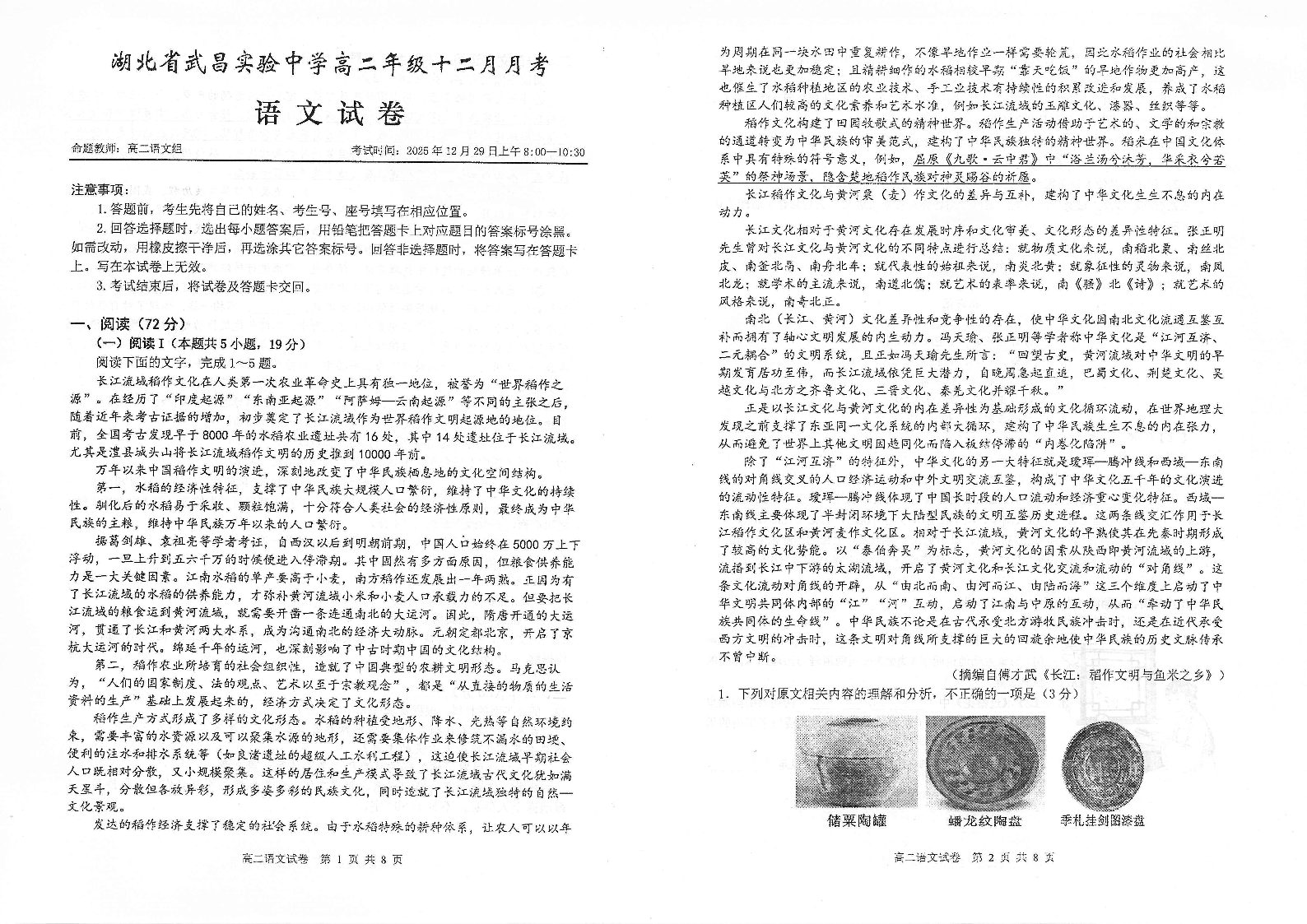 高二语文--湖北省武汉市武昌实验中学2025-2026学年高二上学期12月月考