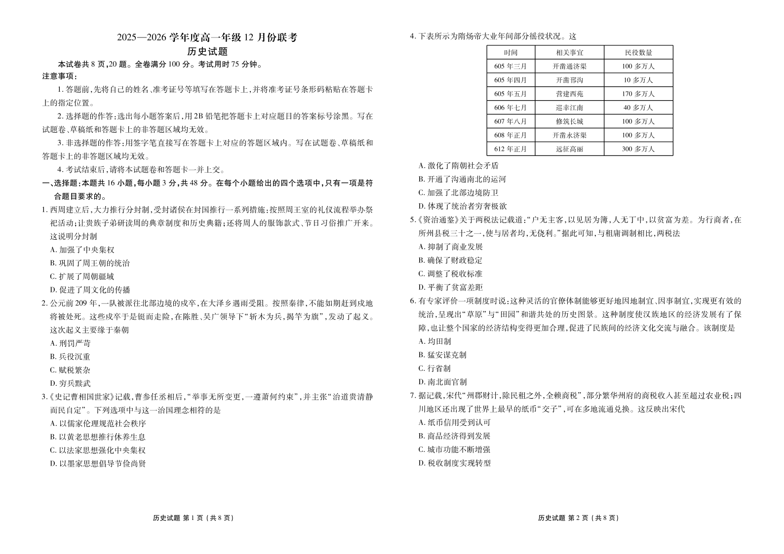 高一历史--广东省衡水金卷2025—2026学年度高一年级12月份联考
