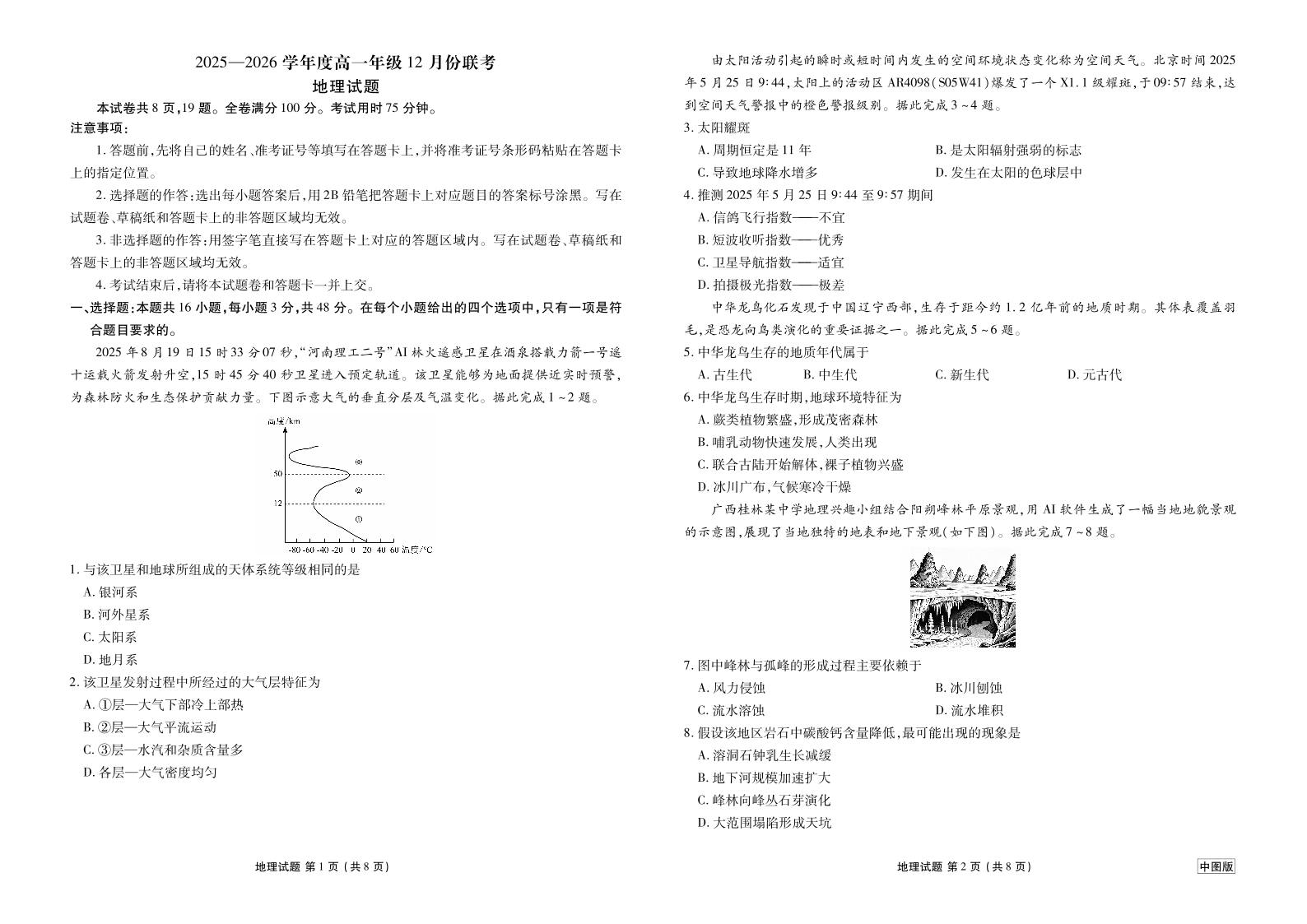 高一(中图版)地理--广东省衡水金卷2025—2026学年度高一年级12月份联考