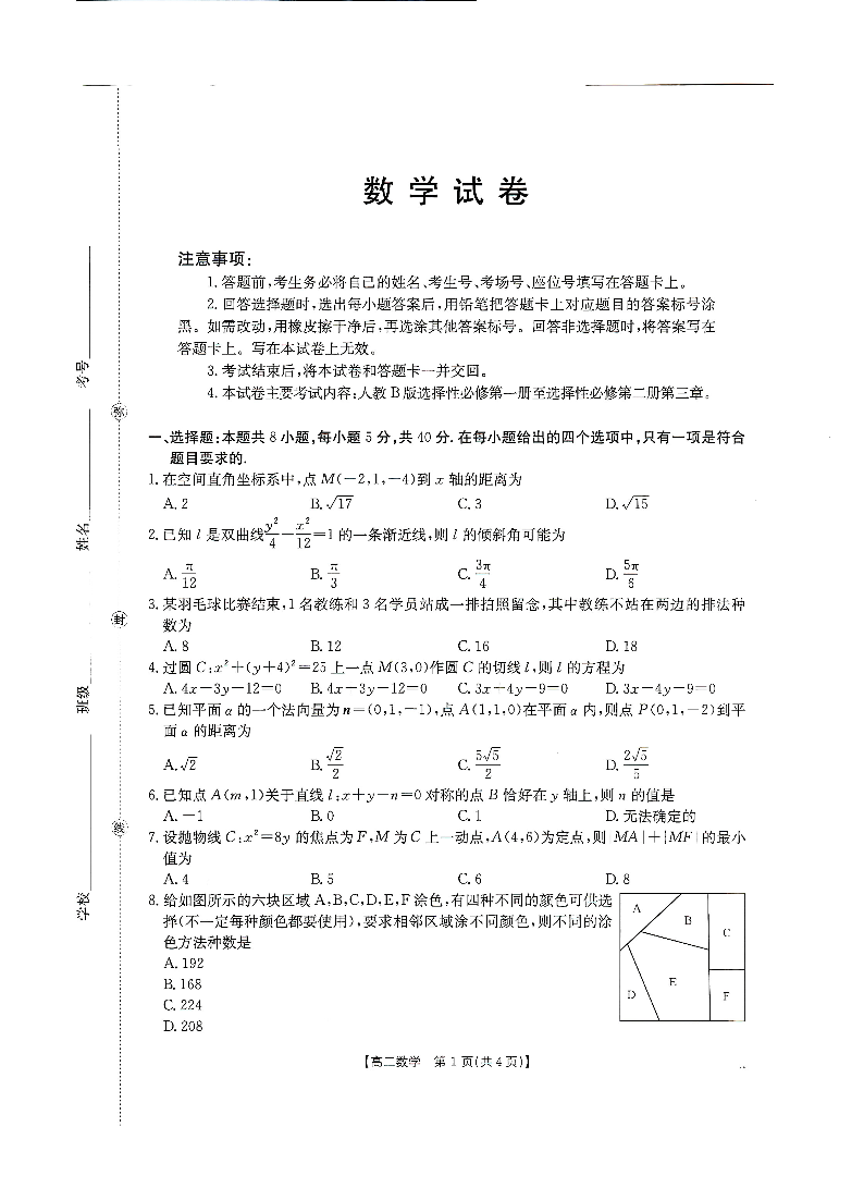 高二数学--辽宁省抚顺市六校协作体2025-2026学年高二上学期期末联考