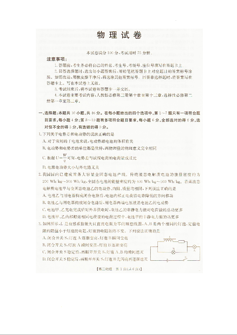 高二物理--辽宁省抚顺市六校协作体2025-2026学年高二上学期期末联考