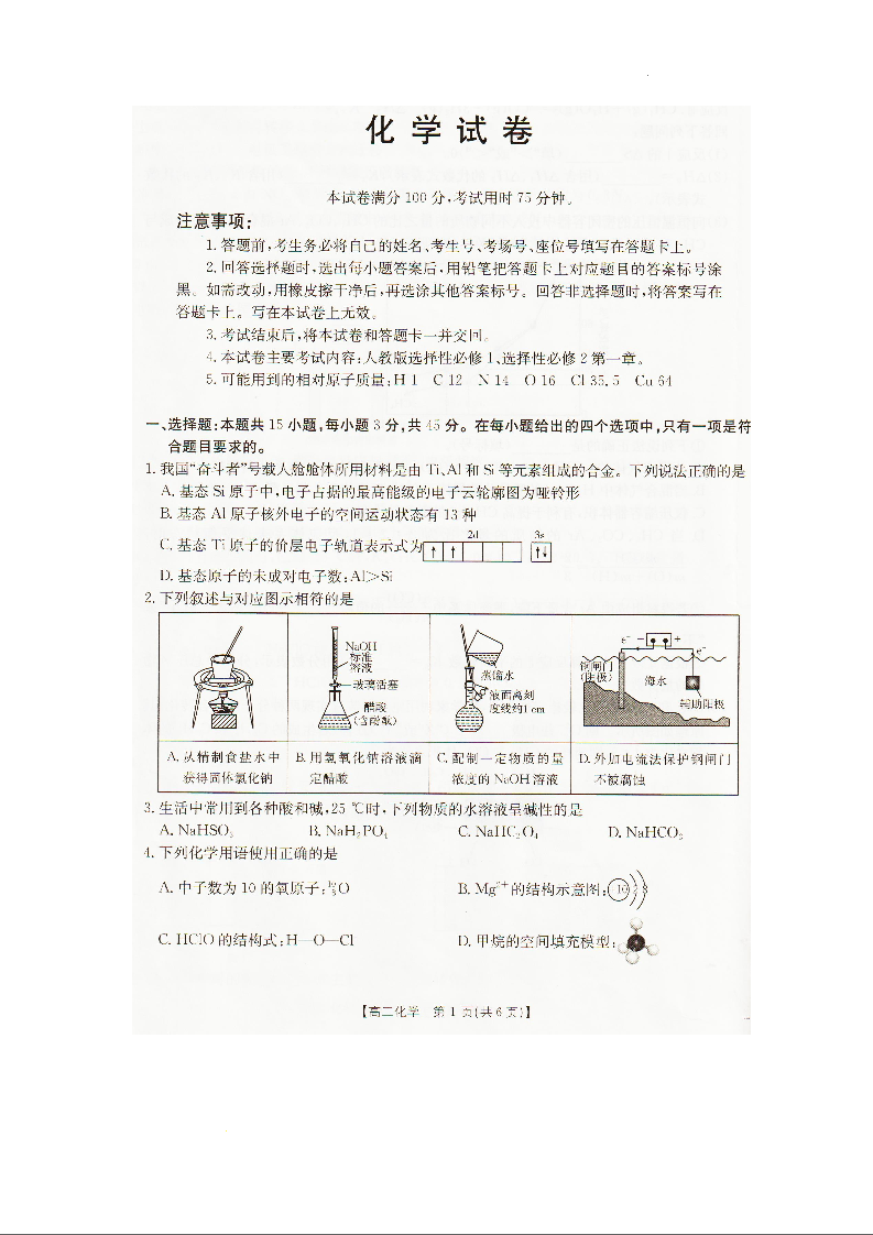 高二化学--辽宁省抚顺市六校协作体2025-2026学年高二上学期期末联考