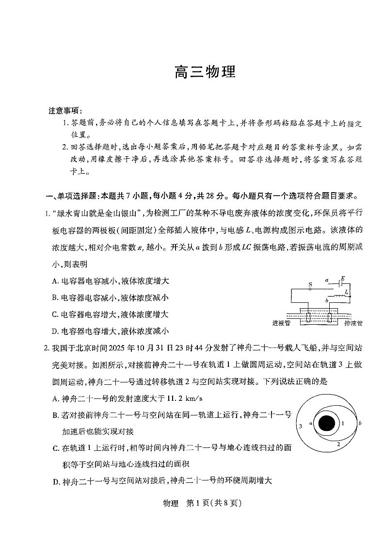 高三物理--河南新乡鹤壁安阳焦作2026届高三一模