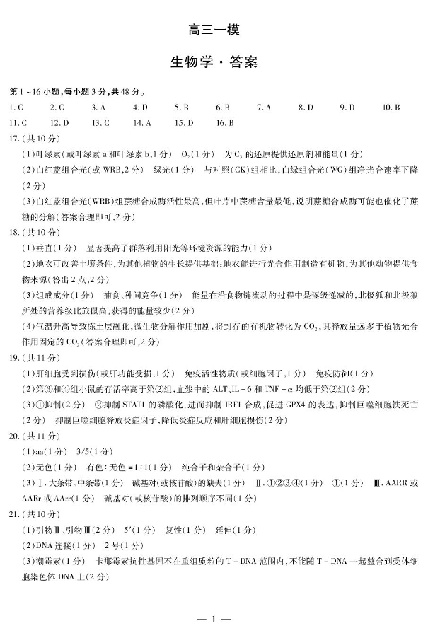 高三生物答案--河南新乡鹤壁安阳焦作2026届高三一模