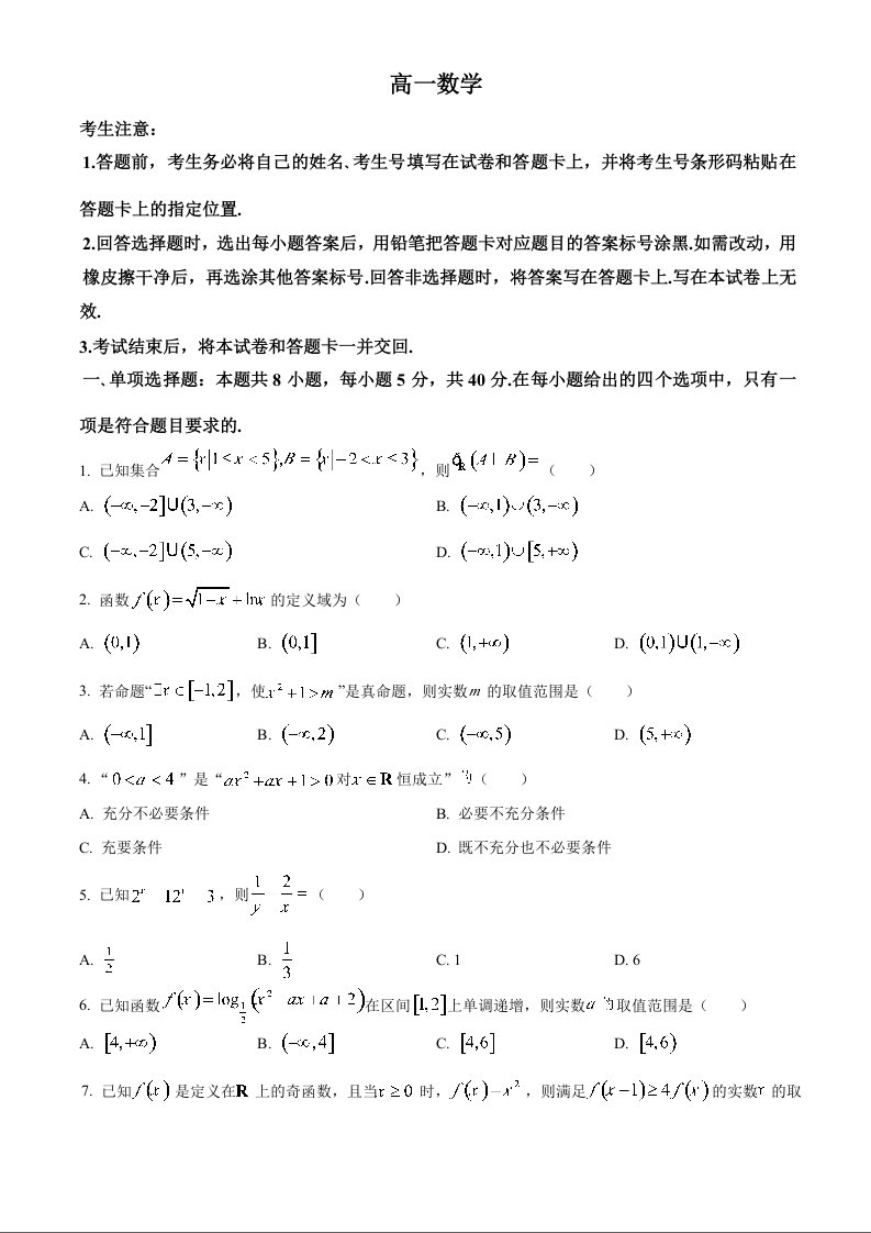 高一数学(原卷版)--安徽省特色高中教研联谊会2025-2026学年高一上学期12月月考