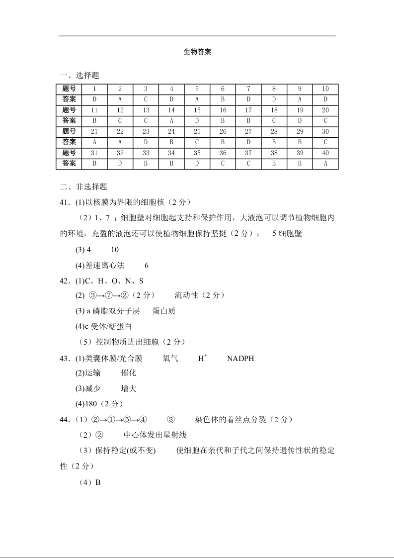 高一生物答案--山东省济南第一中学2025-2026学年高一上学期1月学情检测