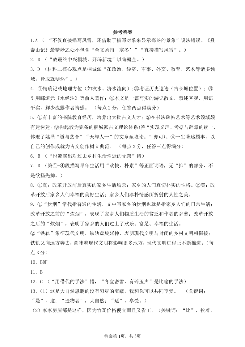 高一语文答案--四川省南充市仪陇中学2025-2026学年高一上学期12月月考