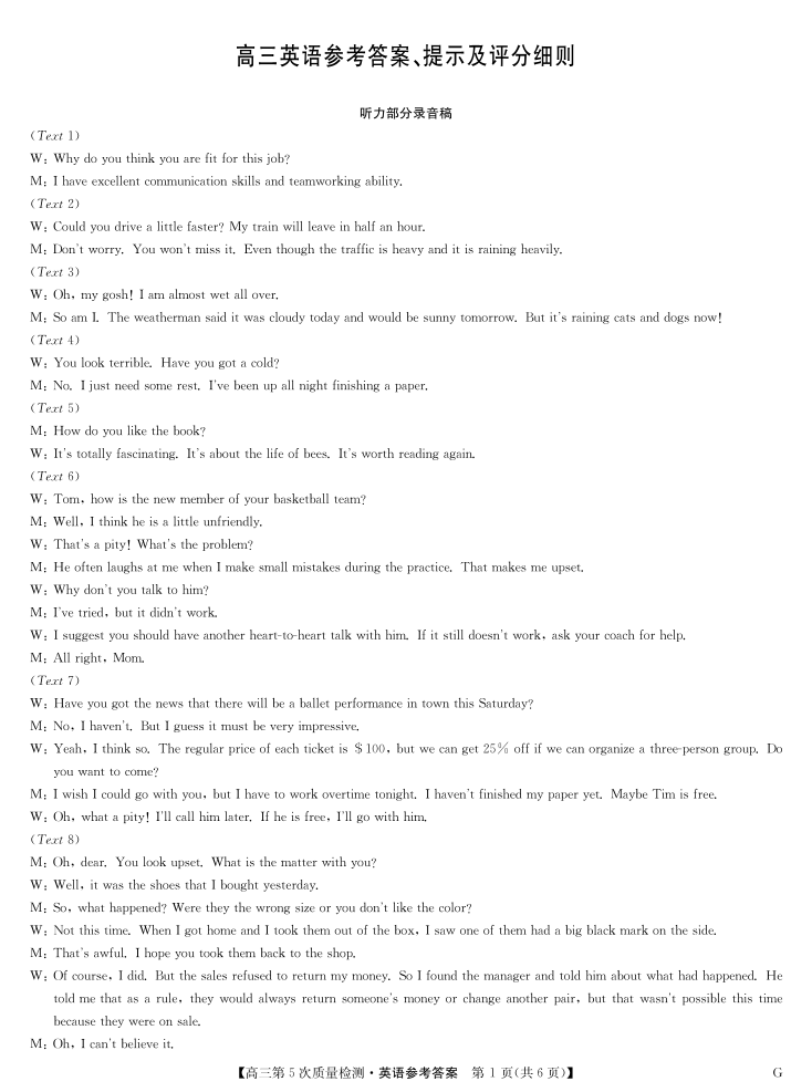 高三英语答案--安徽省九师联盟2026届高三(1月)第五次质量检测