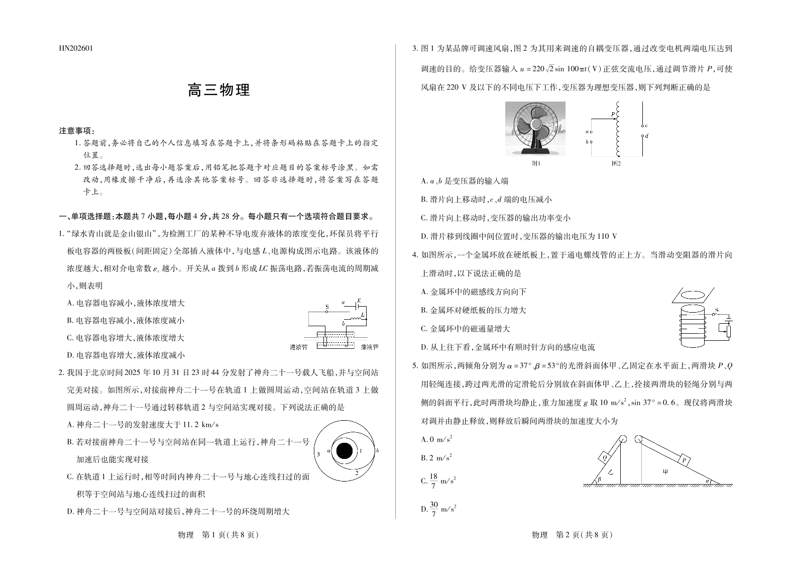 高三物理--河南省多校小高考2026届高三上学期素质评价(三)