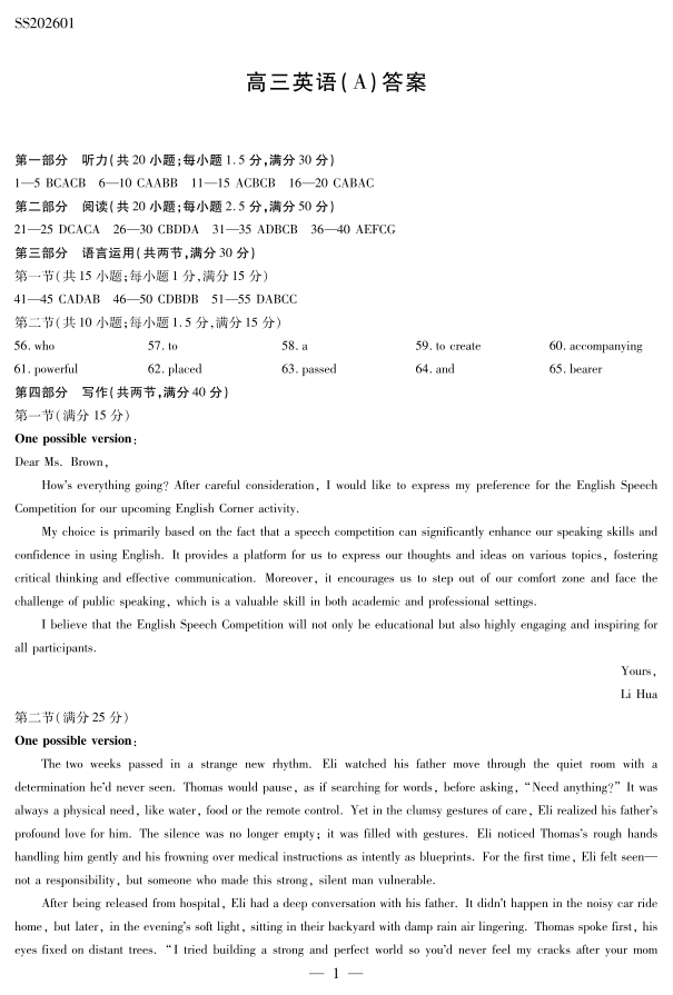 高三英语答案--陕西山西宁夏青海2026届高三学期1月四省联考