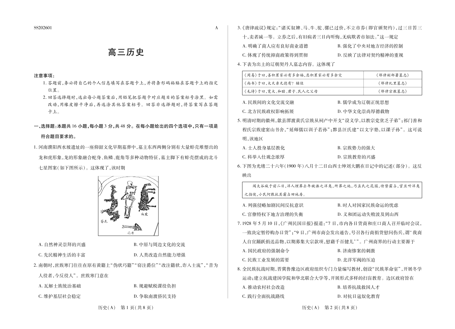 高三历史--陕西山西宁夏青海2026届高三学期1月四省联考