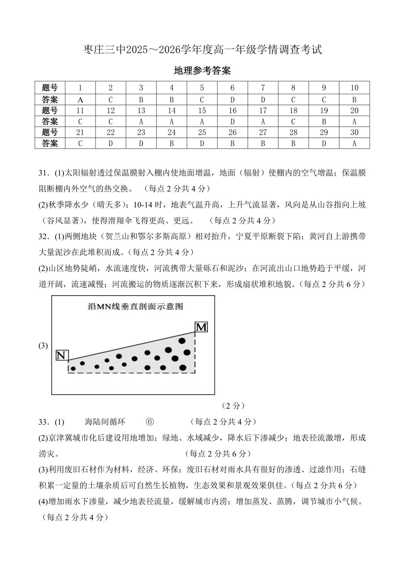高一地理答案--山东省枣庄市第三中学2025-2026学年高一上学期1月月考
